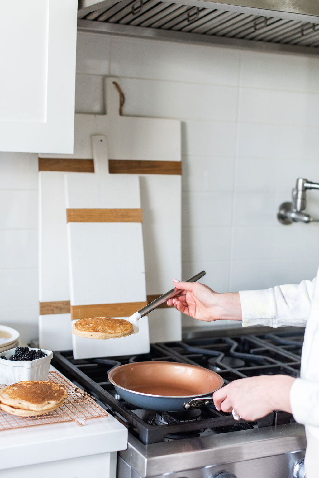 1. 01. Preheat the oven to 200F. This is just to keep the pancakes warm once they are cooked on the stove.