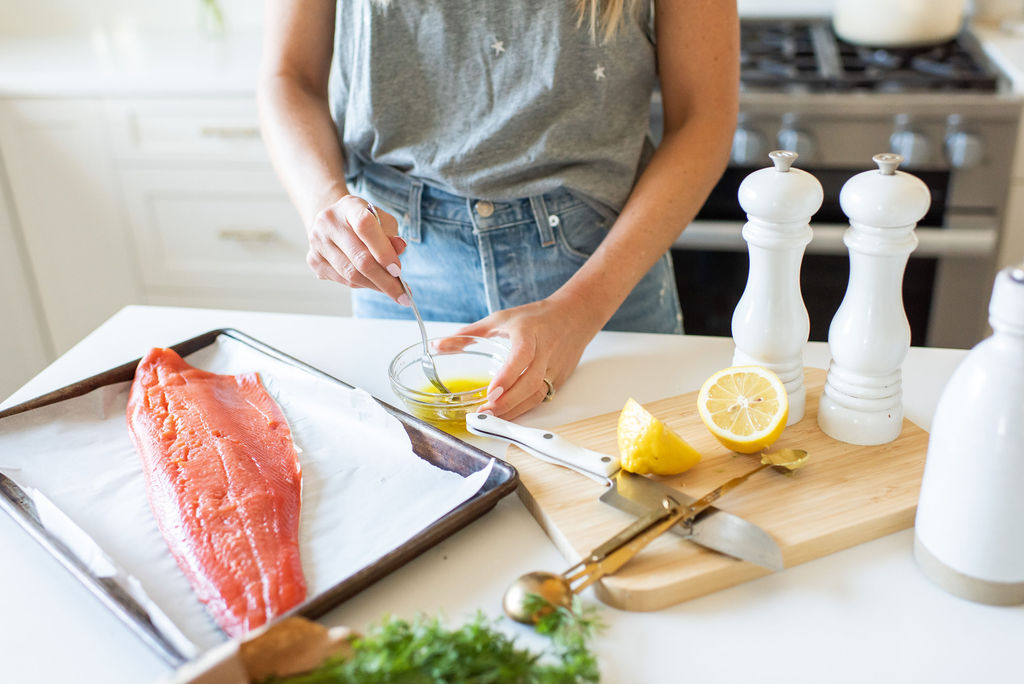 Wild salmon! Definitely one our favourite weekly dinners. It’s easy to prepare, so satisfying, nourishing and great way to bring in more omega-3 and protein into your meals. Research shows the more healthy fats that are consumed during the day, the less cravings for sugar, and more controlled your hunger is!