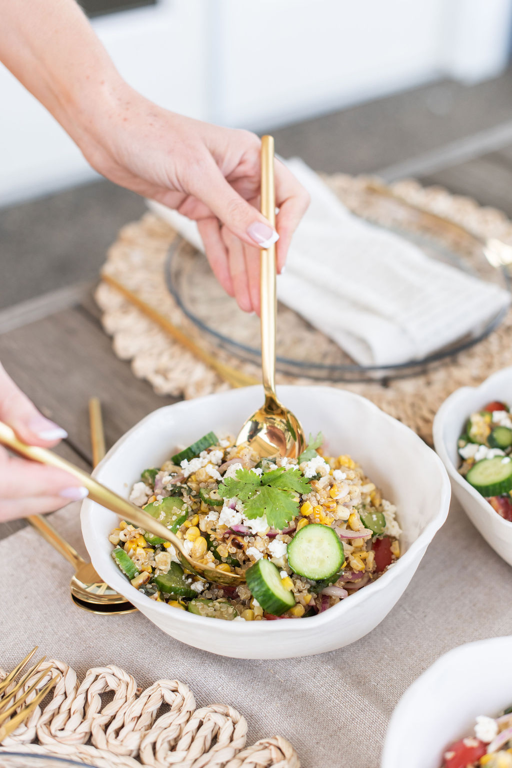 01. Cook the quinoa according to the package directions. Once cooked, transfer to a large serving bowl and let cool.