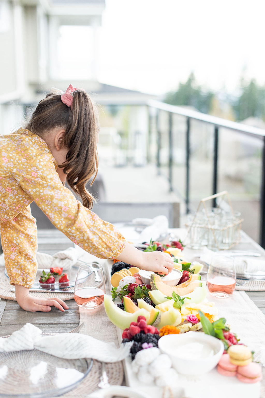 Who doesn’t love to dip?! It just makes food taste even better and is FUN. Normally we do veg dip around here in order to get the kids to eat more raw veg, but a sweet version for fruit is also such a delicious and healthy treat. I love the idea of layering up a sweet dessert board with your favourite fruit, desserts, cookies, nuts, seeds and bowls of gooey melted chocolate and this simple, healthy, creamy and delicious fruit dip!
