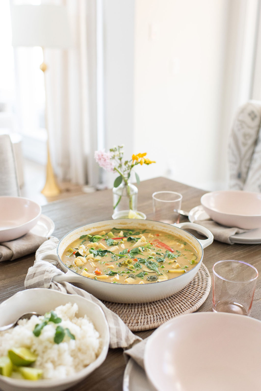 This Thai green curry is a family favourite served with a side of jasmine rice. If you wanted to add more protein, shrimp is a great choice.